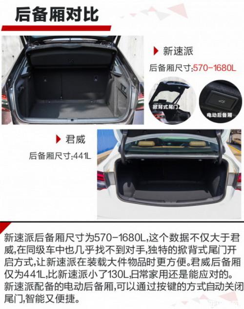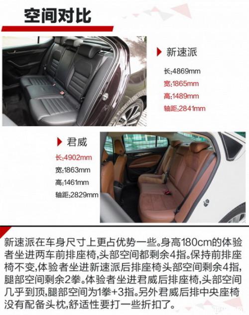 空間對比:新速派車身尺寸及后備廂空間均領先于君威