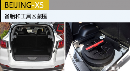 此外,談及極致藏物空間,不得不提的還有后備箱。BEIJING-X5擁有容積為546L的超大后備箱,無論日常用車放雜物,還是長途旅行裝行李統(tǒng)統(tǒng)不在話下。而且掀開備箱蓋板,備胎周邊還有很大的藏匿空間,即使老婆大人再英明,相信也沒力氣翻遍這個(gè)地方。