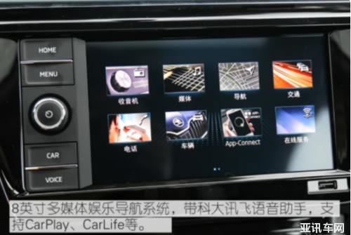 內(nèi)飾采用展翼式座艙布局,純黑配色通過不同的材質(zhì)搭配出不同的質(zhì)感,紅色縫線以及木紋飾板的加入起到了點綴的效果,不至于讓內(nèi)飾看起來太單調(diào)。中高配車型提供8英寸液晶屏+機械式指針的組合儀表盤,液晶屏可顯示多種行車信息,展示效果不如新速派的全液晶儀表盤那么直觀。全系標配8英寸中控屏,高配車型上搭載MyLink+智聯(lián)系統(tǒng),除常規(guī)互聯(lián)功能外,還提供高德地圖、網(wǎng)易云音樂、考拉FM等APP。