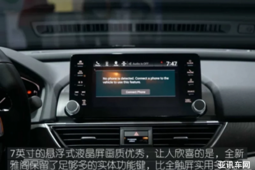 雅閣的內(nèi)飾設(shè)計有了全新風格,內(nèi)飾用料的整體表現(xiàn)也維持了較高的水平,大面積軟性材質(zhì)以及紋路裝飾板都保證了良好的車內(nèi)氛圍。雅閣為中高配車型配備7英寸液晶屏+機械式指針的組合儀表盤,菜單信息可在左側(cè)的液晶屏上進行選擇,但視覺效果還是不如新速派的全液晶儀表盤。中低配車型配備了7英寸懸浮式中控屏,增添了一些科技感,不過依舊保留了實體按鍵,使用起來更加便捷。