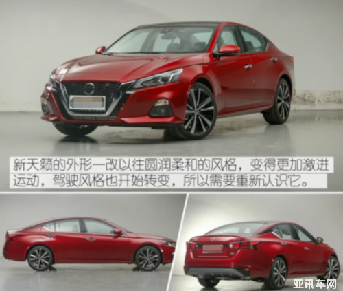 新天籟采用日產(chǎn)V-Motion設(shè)計語言,品牌辨識度得到進一步強化。兩側(cè)角度尖銳的大燈組合搭配下方梯形的進氣口和兩側(cè)霧燈下方的鏟型前唇造型,讓原本比較平淡的天籟在這一臺車上呈現(xiàn)出一股狠勁。側(cè)身通過C柱后方帶有的黑色飾板,營造出懸浮式車頂?shù)男Ч?。尾部整體設(shè)計比較樸實,外凸的大尺寸尾燈點亮效果不錯。