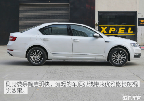 明銳智行款采用斯柯達家族式設(shè)計語言,分體式大燈很有美感,全鍍鉻裝飾的直瀑式中網(wǎng)讓它變得更精致。側(cè)身線條簡潔明快,流暢的車頂弧線帶來優(yōu)雅修長的視覺效果。尾部設(shè)計緊湊干練,尾燈加入幾何元素,豐富了層次感。下方隱藏的排氣口搭配雙出造型的裝飾件,凸顯了車輛的運動感。