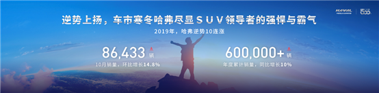 回首過往,哈弗在中國車市獨(dú)立潮頭,連續(xù)9年蟬聯(lián)中國SUV銷量冠軍,并在今年初成為全球最快達(dá)成500萬銷量的專業(yè)SUV品牌,如今,哈弗H6正向著單車型全球累計銷量300萬輛的新輝煌大步邁進(jìn)。面對紅海市場格局下的嚴(yán)峻挑戰(zhàn),哈弗實現(xiàn)了持續(xù)至今的逆勢上漲,10月銷量達(dá)86433輛,環(huán)比勁增14.8%;年度累計銷量突破60萬輛,同比大增10%,以一騎絕塵之姿繼續(xù)領(lǐng)跑市場,鑄就行業(yè)“領(lǐng)導(dǎo)者”新高峰。