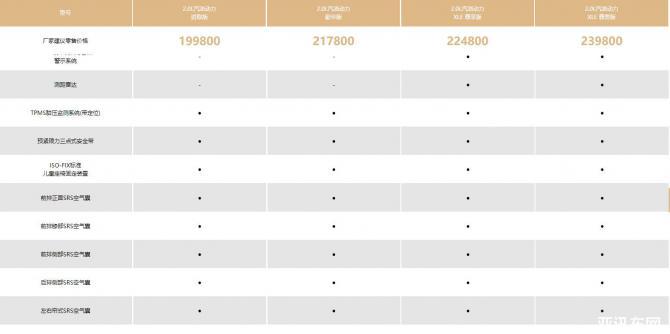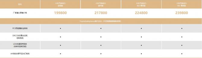 我們直接從代表全系入門配置的2.0L進(jìn)取版來看,首先,亞洲龍全新標(biāo)配了豐田Toyota Safety Sense智行安全系統(tǒng)2.0版本,包含了預(yù)碰撞安全系統(tǒng)、動(dòng)態(tài)雷達(dá)巡航控制、帶轉(zhuǎn)向控制功能的車道保持系統(tǒng)和自動(dòng)調(diào)節(jié)遠(yuǎn)光燈系統(tǒng)。其次是氣囊的數(shù)量和位置,前排氣囊、膝部氣囊以及前后排左右側(cè)氣簾都是全系標(biāo)配,氣囊數(shù)量更是達(dá)到10個(gè)之多!