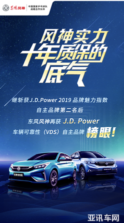 2019年11月28日,上海 — 全球領(lǐng)先的消費(fèi)者洞察與市場(chǎng)研究機(jī)構(gòu)J.D. Power(君迪)發(fā)布了2019中國車輛可靠性研究SM(VDS),繼9月中國車輛魅力指數(shù)APEAL獲得自主品牌第二名之后,東風(fēng)風(fēng)神再獲車輛可靠性(VDS)自主品牌第二名,并超越眾多合資品牌,取得了行業(yè)第十的好成績。