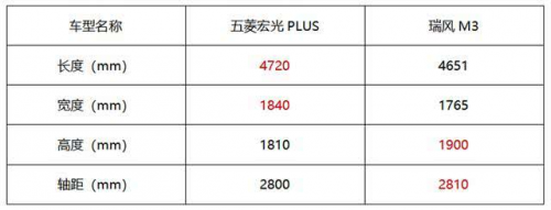 從上圖中的數(shù)據(jù)來(lái)看五菱宏光PLUS和瑞風(fēng)M3,五菱宏光PLUS在長(zhǎng)度和寬度方面表現(xiàn)出色,而瑞風(fēng)M3在高度和軸距上略有優(yōu)勢(shì)。更長(zhǎng)更寬的內(nèi)部車(chē)廂,就意味著能夠放置更多的物品。