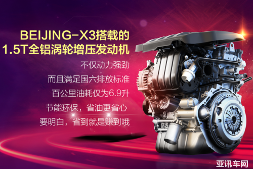 在小型SUV車型中,因?yàn)槌杀驹?自然吸氣發(fā)動(dòng)機(jī)一直占據(jù)主導(dǎo)地位。但是,自吸發(fā)動(dòng)機(jī)的動(dòng)力表現(xiàn)卻差強(qiáng)人意,僅夠用滿足日常代步而已。因此當(dāng)同級(jí)車型還在使用自然吸氣發(fā)動(dòng)機(jī)的時(shí)候,BEIJING-X3卻搭載了1.5T全鋁渦輪增壓發(fā)動(dòng)機(jī),且滿足國(guó)六排放標(biāo)準(zhǔn)。