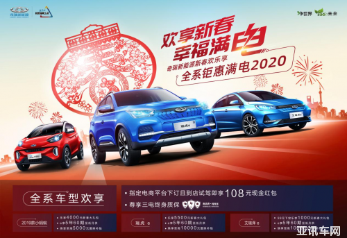 過(guò)硬的車(chē)輛品質(zhì)、實(shí)在的試駕紅包優(yōu)惠,三電終身質(zhì)保的用車(chē)承諾,奇瑞新能源始終以高品質(zhì)的汽車(chē)產(chǎn)品和優(yōu)質(zhì)的服務(wù)為每一位用戶(hù)提供更優(yōu)的出行生活方式。春節(jié)已悄悄臨近,還在觀望的用戶(hù)切不可錯(cuò)過(guò)如此優(yōu)惠的活動(dòng),三款車(chē)型隨心選擇,讓2020一直滿(mǎn)電,一路馳騁。