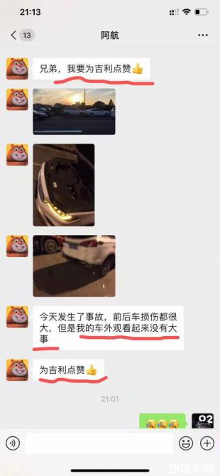事后,博越PRO車主在與朋友聊起這起追尾時,也不禁感嘆“多虧了博越PRO車硬才有驚無險“,忍不住要為國產(chǎn)良心車“吉利點贊”。