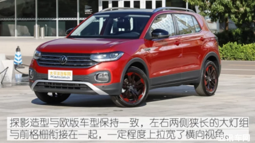 一汽-大眾探影其實是歐版T-Cross的國產(chǎn)版本,其造型設計與歐版保持一致,左右兩側狹長的大燈組與前格柵銜接在一起,加上大尺寸梯形進氣口造型,一定程度上拉寬了橫向視角。側身采用雙腰線設計,配合下方黑色塑料護板與熏黑鋁合金輪轂,提升了運動氣息。尾部采用貫穿式尾燈組和隱藏式排氣布局,下方則采用與前臉相呼應的梯形裝飾。