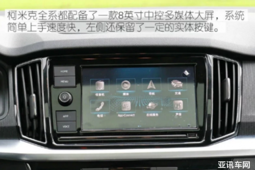 柯米克內(nèi)飾設計以實用為主,是三款車中唯一全系標配8英寸中控大屏的車型,探影中配才開始配備8英寸中控屏,途鎧僅頂配車配備8英寸中控屏。搭載智隨在線互聯(lián)系統(tǒng),前三年可免費使用4G流量,支持Carplay/Carlife/Mirrorlink智能手機映射功能、實時路況導航、限行路徑規(guī)劃、在線地圖升級、興趣點推送等,科大訊飛AI云助手還支持帶地方口音的普通話識別,實用性非常高。多功能方向盤也是全系標配,集成音量調(diào)節(jié)、電話、語音識別等功能鍵。舒適版配備自動空調(diào),PM2.5過濾裝置是全系標配,對于凈化車內(nèi)空氣非常有效。