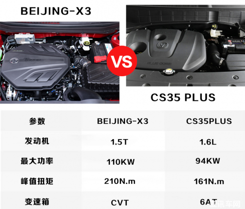 受于成本考慮,小型SUV幾乎都是小排量自吸發(fā)動機(jī),起步慢,動力弱成為小型SUV的代名詞,而BEIJING-X3(原北京汽車智達(dá)X3)的出現(xiàn),首次在6萬元價(jià)格內(nèi)做到了全系標(biāo)配渦輪增壓發(fā)動機(jī)。因此,許多人都想知道究竟搭載渦輪增壓發(fā)動機(jī)的BEIJING-X3相比同級自然吸氣發(fā)動機(jī)車型,在駕乘感受上會有哪些不同?下面,不妨選擇價(jià)格相近的BEIJING-X3 2019款1.5T CVT星耀版和長安CS35 PLUS 2019款1.6L 自動悅聯(lián)版展開對比,看看兩款車型能否針尖對麥芒。