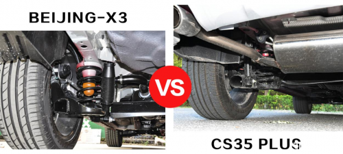 得益于BEIJING-X3采用優(yōu)化的后懸減震設(shè)計(jì),不僅是襯套的材質(zhì)用料厚道,更是細(xì)心到安裝角度,提高懸架韌性,以及采用減震筒與減震彈簧分離布置,所以在抑制顛簸方面表現(xiàn)出色,真正做到起伏“不顛”。雖然長安CS35 PLUS同樣采用減震筒與減震彈簧分離布置,但是在減震筒角度上仍采用傳統(tǒng)的垂直角度,減震回饋力度不夠迅速,彈簧韌性不足,所以在“不暈”“不顛”方面,要略遜與BEIJING-X3。