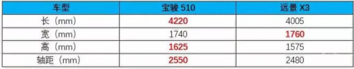拋開寶駿510和遠景X3小型SUV的定位,單從空間尺寸來說,遠景X3無論是車身長度、高度、軸距,都要比寶駿510小一個級別。寶駿510長寬高為4220*1740*1625mm,軸距為2550mm,縱觀小型SUV車型中,這個尺寸可以說是相當搶眼了。而遠景X3尺寸僅有4005*1760*1575mm,軸距只有2480mm,由于遠景X3在尺寸上的差距,無論是前排還是后排的乘坐感,都不及寶駿510的寬敞舒適,如果是身材高大的車友們,購車的時候還是要以腿部和頭部空間的舒適度為主。