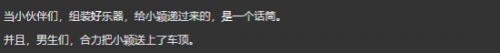 柯米克當仁不讓的作為了運載的主力,不僅把大家一起帶了出去,還把大伙兒的樂器也安全送達。小伙伴們按照正常流程,開始了正常的演奏前的調(diào)試工作。讓小穎奇怪的是,樂隊小伙伴選擇的這個地點,遠離鬧市,空曠無人。連旁觀者都沒有。但,讓小穎沒想到的是……