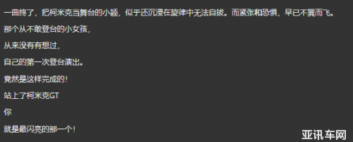 后記:小穎同學,非常感謝樂隊的小伙伴給予她的支持和鼓勵。同樣也非常慶幸自己選擇了柯米克GT