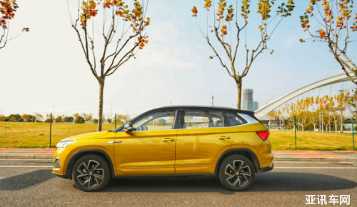 從車身側(cè)面來看,黑色懸浮式車頂與銀色D柱,搭配黃色車身,采取車頂和車身的撞色設(shè)計(jì),三色合一凸顯運(yùn)動(dòng)與時(shí)尚。遛背式的后尾設(shè)計(jì)與上下對(duì)稱的腰線彰顯出濃郁的轎跑SUV韻味,在車身的很多細(xì)節(jié)方面也能夠找到很多展現(xiàn)GT身份的標(biāo)識(shí)。車身顏色有黃紅藍(lán)白可選,多種選擇多種時(shí)尚。