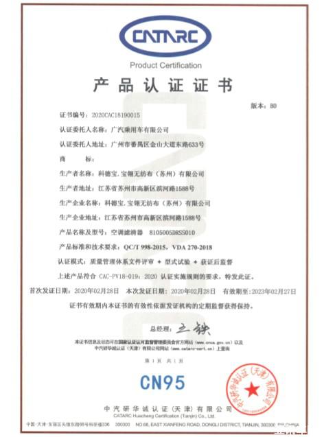為了給消費者更好的保護,全新一代傳祺GA6的空氣過濾系統(tǒng)進行了升級,將車規(guī)級CN95濾芯全面應(yīng)用于車內(nèi),這種濾芯有高效的過濾功能,對直徑0.3微米顆粒物過濾達到95%以上、對多種病菌的殺菌率在99%以上,此項技術(shù)已獲得國內(nèi)汽車行業(yè)第三方認證機構(gòu)的專業(yè)認證,相當(dāng)于為你的愛車帶上了N95口罩,多重防護讓人安心加倍!