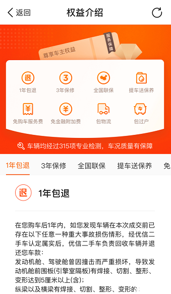 尤其是最亮眼的尊享車主權(quán)益,消費(fèi)者通過優(yōu)信進(jìn)行在線購(gòu)車時(shí),不僅能享受0購(gòu)車服務(wù)費(fèi)和0金融附加費(fèi)的實(shí)惠;提車過程中體驗(yàn)包物流、包過戶和送保養(yǎng)的服務(wù),還能在車輛使用過程中享受到全國(guó)聯(lián)保、1年退車年限和3年保修年限的售后服務(wù)。