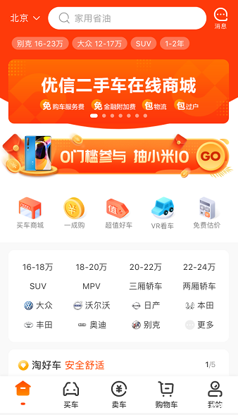 如果你還在猶豫去哪里買二手車,不妨你也去優(yōu)信二手車看看?,F(xiàn)在從優(yōu)信APP上購(gòu)車還能享受落京戶總價(jià)立減1000元、免費(fèi)抽獎(jiǎng)拿小米10手機(jī)、華為榮耀平板5等好禮~!