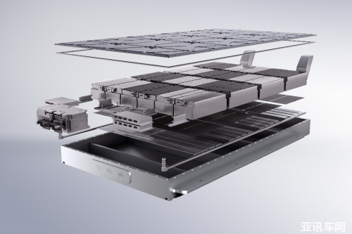 愛馳汽車三明治結(jié)構(gòu)電池包示意圖