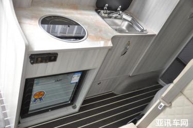 廚房相比舊款有了一定的優(yōu)化,臺面配置有帶蓋板的洗菜池,電磁爐,冰箱,櫥柜內(nèi)的空間可放置廚房用具。廚房正上方配有1P家用變頻空調(diào),400AH鉛酸電瓶可實現(xiàn)行車及外接電源雙向充電,此車在無外接電源情況下,可獨立運行五六個小時,可選裝太陽能板及發(fā)電機滿足電量使用。