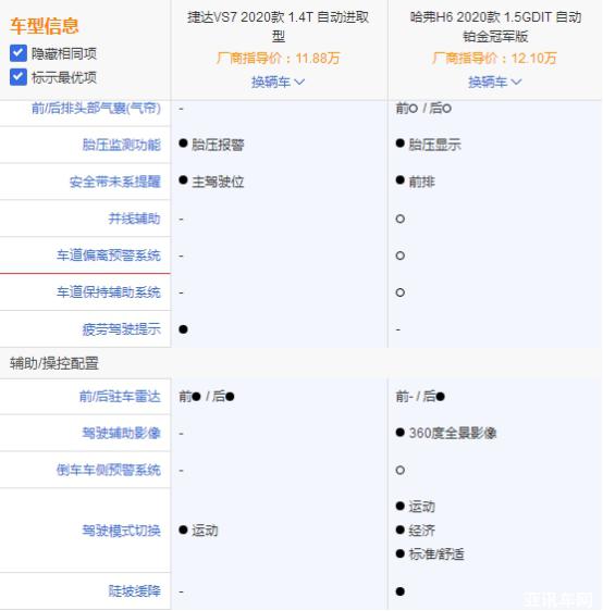 不僅如此,全新哈弗H6鉑金版還有更多豐富的輔助配置,如前側氣囊、陡坡緩降、高清360全景影像、車前霧燈、內后視鏡自動防炫目裝置等等,讓你出行游玩安全又愉悅,還可以選配添加并線輔助、車道保持輔助系統(tǒng)、倒車側向警告、車道偏離預警系統(tǒng)等實用功能,是不是覺得很貼心。而捷達VS5雖然搭載了疲勞提醒、前后駐車雷達,但是連倒車影像這種常用配置都沒有配備,相比于全新哈弗H6鉑金版差距依然明顯。