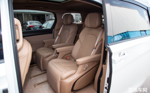 別克GL8 ES第二排貴賓座椅僅用簡單的縫線處理,不如威然Viloran的菱形格紋座椅顯檔次。座椅支持加熱和通風(fēng),僅頂配版提供按摩功能,而且只支持一種模式和一種強(qiáng)度調(diào)節(jié),座椅的檔次感與舒適性都遠(yuǎn)不及威然Viloran。