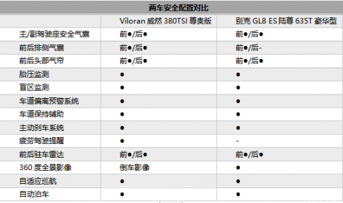 別克GL8 ES和大眾威然哪個(gè)好?安全配置對(duì)比:威然多出第二排側(cè)氣囊和疲勞駕駛提醒
