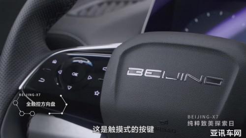 在外形極度迎合當(dāng)代年輕人后,BEIJING-X7的內(nèi)飾設(shè)計(jì)也在一定程度上實(shí)現(xiàn)了科技感與實(shí)用性的完美融合。包括全觸控方向盤、波譜律動(dòng)氛圍燈等,營造出更具場景化的燈光效果,讓消費(fèi)者不止于“駕車”更像是乘坐于一輛穿梭于時(shí)空之間的未來機(jī)器中。我們可以發(fā)現(xiàn),傳統(tǒng)的儀表盤和中控屏幕被一條狹長的“雙聯(lián)屏”替代,它不僅提升了空間的利用率,而且顯示內(nèi)容更全面、效果更細(xì)膩;新車內(nèi)部“大腦”也使用了BEIJING品牌溫暖陪伴交互體驗(yàn)系統(tǒng),設(shè)計(jì)與技術(shù)在此刻相通,為年輕消費(fèi)者提供一種更新穎的駕享體驗(yàn)。