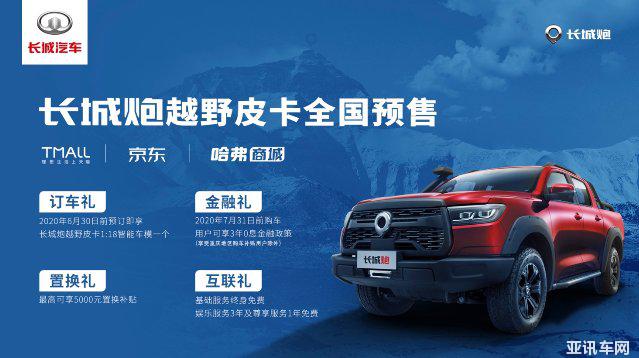訂車禮:2020年6月30日前預(yù)訂即享長城炮越野皮卡1:18智能車模一個;