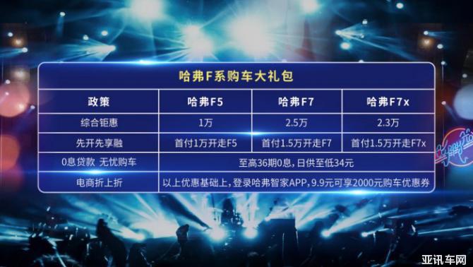 活動最后,哈弗F系更豪橫送出7折哈弗F7和哈弗F5各一臺,并發(fā)布哈弗F系購車大禮包——購買“一門三杰”可享受至高2.5萬元的綜合鉅惠,最低1萬元首付的先開先享融政策,以及至高36期0息、日供至低34元的無憂購車政策。在以上優(yōu)惠基礎上,登錄哈弗智家APP,還可9.9元搶購2000元購車優(yōu)惠券。