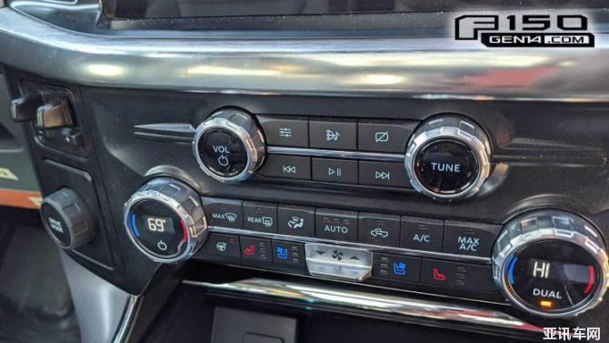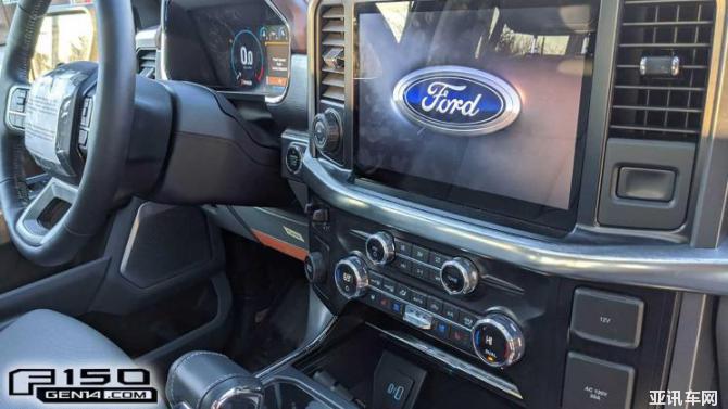 從內(nèi)部來看,新款F-150依舊延續(xù)了在售車型的布局,但中控屏面積進(jìn)一步變大。此外,新款F-150還換裝了全液晶儀表盤和全新造型的換擋桿,方向盤和空調(diào)控制區(qū)域的設(shè)計(jì)也有所調(diào)整。