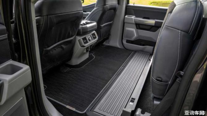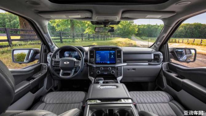內(nèi)飾部分,新車(chē)的整體布局與現(xiàn)款車(chē)型基本保持了一致,仍然是美式豪華皮卡的風(fēng)格。但通過(guò)對(duì)比后發(fā)現(xiàn),其一些細(xì)節(jié)造型還是有著一定的變化。例如其采用了12.3英寸全液晶儀表盤(pán)、12英寸中控多媒體屏幕、造型更加方正的三輻式多功能方向盤(pán)以及經(jīng)過(guò)全新設(shè)計(jì)后的游艇式擋把造型。在車(chē)內(nèi)配置上,新車(chē)搭載了福特的SYNC 4信息娛樂(lè)系統(tǒng),支持Apple CarPlay、Android Auto和SYNC AppLink手機(jī)互聯(lián)以及Waze和Ford + Alexa等應(yīng)用。