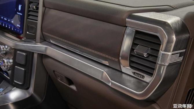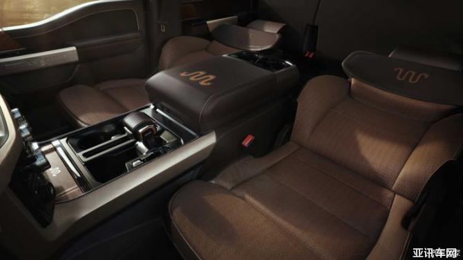 值得說(shuō)的一點(diǎn)是,新款F-150還推出了一款名為King Ranch的車(chē)型,該車(chē)的內(nèi)飾采用更加豪華的設(shè)計(jì),車(chē)內(nèi)的金屬裝飾件都采用拉絲處理,同時(shí)其座椅頭枕、中央扶手箱等處還采用了特殊的刺繡徽章。