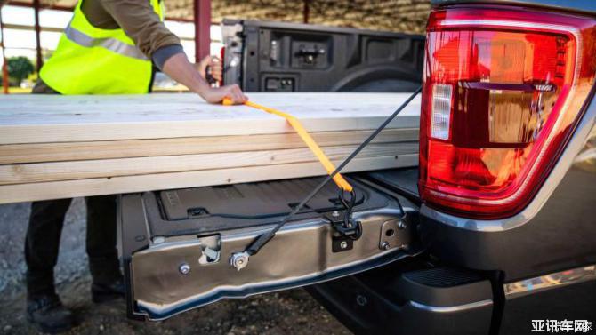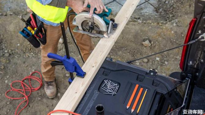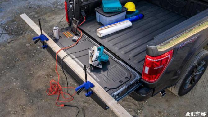 配置方面,福特還配有一套成為Pro Power Onboard系統(tǒng),這套系統(tǒng)在后尾廂的左側(cè)方設(shè)立了多個(gè)插頭,根據(jù)車(chē)型的不同將提供包括2.0kW、2.4kW以及7.2kW的三種不同輸出功率配置,前兩者均配有兩個(gè)120V插座,而后者則配備了四個(gè)120V插座和一個(gè)240V插座。據(jù)官方稱(chēng),這套系統(tǒng)可以同時(shí)為電視、便攜式揚(yáng)聲器、迷你冰箱、攪拌機(jī)等電器進(jìn)行供電。同時(shí),其后尾門(mén)打開(kāi)后,還可以形成一個(gè)工具臺(tái),可用于切割木材、進(jìn)行測(cè)量等工作。