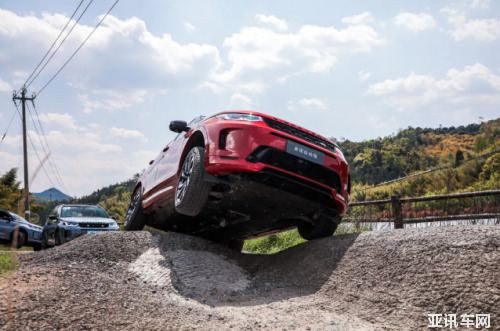 眾所周知,路虎全地形科技早已是路虎品牌享譽全球的標(biāo)簽,這款繼發(fā)現(xiàn)神行之后的全新路虎發(fā)運自然繼承了這一大優(yōu)點,搭載了第二代智能全地形反饋適應(yīng)系統(tǒng),擁有多種地形模式選擇,包括預(yù)設(shè)的普通、草地/砂礫/雪地、泥沼/車轍以及沙地、巖石/大圓石地形等。只要不是遇到極端的越野地形,選擇AUTO駕駛模式即可應(yīng)付現(xiàn)場大部分越野項目?;蛟S首次對地形不太熟悉,油門把控不到位,所以很多時候會“卡”在中間,這也是大多車主會遇到的情形,這時就特別考究車輛四驅(qū)系統(tǒng)扭矩分配能力了。就如在涉水環(huán)節(jié)后上駝峰,后車輪就特別容易打滑,要借助一些沖力才更容易征服這個將近30度的駝峰。