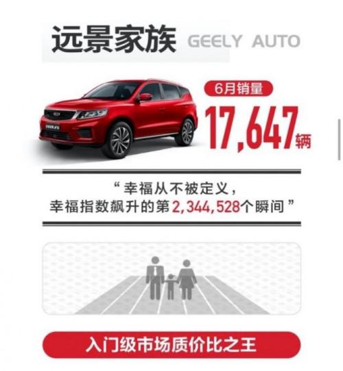 要知道,吉利汽車在不同市場(chǎng)領(lǐng)域均有合理布局,其中經(jīng)濟(jì)型汽車品牌的遠(yuǎn)景家族,作為吉利汽車的基石產(chǎn)品,獲得17647輛的漂亮銷量成績(jī),累計(jì)銷量已超234萬(wàn);作為中國(guó)汽車品牌領(lǐng)軍者的博越家族、帝豪轎車,6月銷量均超2萬(wàn)輛;而在新能源領(lǐng)域的幾何A與帝豪EV、帝豪GSe等新能源車型,6月總銷量達(dá)8750輛,亦銷量喜人。