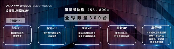 怎么樣,經(jīng)過我這一番介紹,是不是對這款VV7 GT brabus|automotive有些心動了?在新車上市之際,WEY品牌還特別推出了多重專屬服務特享權(quán)益,針對購買極智豪華轎跑SUV VV7 GT brabus|automotive的用戶,推出智聯(lián)VIP、保養(yǎng)VIP、維修VIP、服務VIP、質(zhì)保VIP共五大特享極智VIP權(quán)益,提供智能網(wǎng)聯(lián)服務終身免費、首任車主基礎保養(yǎng)終身免費、車輛維修期間給予車主交通費用補償、維保項目上門取送車服務免費,以及5年15萬公里超長質(zhì)保,首任車主發(fā)動機、變速器終身免費保修暖心支持,減輕大家購車、用車的壓力,著實暖心!