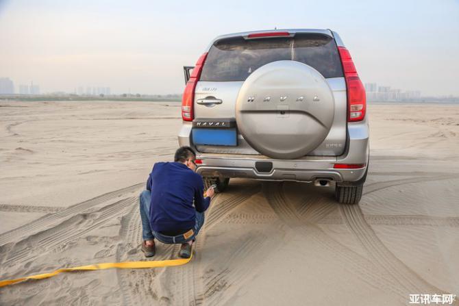正在絕望時,不遠處一輛銀灰色的“大塊頭”呼嘯而過,卷起一陣煙塵,原來是一輛哈弗H9??吹轿蚁蒈?,這位車主熱心地表示愿意幫忙,并熟練地展開救援,三下五除二就輕松把我從沙地里拽了出來。