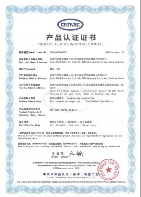 關鍵詞:VV6,健康,認證,安全,國汽研