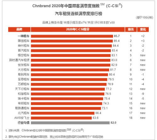 對(duì)于服務(wù)體驗(yàn)的重視,也讓一嗨收獲了許多的認(rèn)可。品牌評(píng)級(jí)權(quán)威機(jī)構(gòu)Chnbrand發(fā)布的2020年中國(guó)顧客滿意度指數(shù)SM (C-CSI)品牌排名中,一嗨租車以85.7分排名行業(yè)第一,榮膺2020年C-CSI顧客最推薦品牌。
