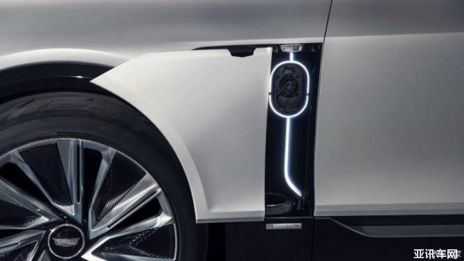 車身側(cè)面來看,Lyriq的側(cè)面整體造型看上去十分運(yùn)動,溜背式的側(cè)面造型讓其看上去運(yùn)動感十足,同時其車門的面積更大,讓整車看上去較為厚重。細(xì)節(jié)方面,該車前翼子板處采用銀灰色處理的凱迪拉克LOGO,C柱區(qū)域還采用更加復(fù)雜的造型設(shè)計(jì)。同時,該車還在車身左前輪后部設(shè)有充電口,并針對充電需求時進(jìn)行前后移動,質(zhì)感突出。