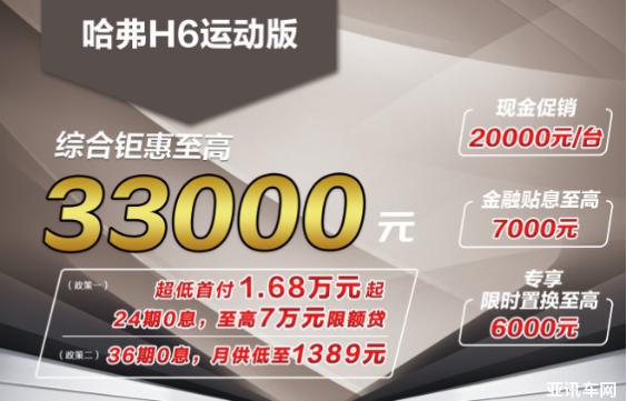 因此哈弗H6運動版目前為消費者準備了至高3.3萬元鉅惠,其中包括2萬元現(xiàn)金促銷,至高7000元金融貼息和至高6000元專項置換補貼,每一項優(yōu)惠都透露著哈弗品牌回饋消費者的滿滿誠意。而且消費者可享受多種0息金融方案,例如24期0息方案,僅用1.68萬元就可以將嶄新的哈弗H6運動版帶走;36期0息方案下,換算日供僅46.3元,而這筆錢完全可以從有車后每天省下的打車費里扣除,購買哈弗H6運動版就是這么輕松愉快!