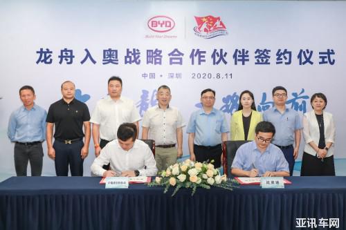 8月11日,比亞迪與中國(guó)皮劃艇協(xié)會(huì)在深圳簽約,成為“龍舟入奧戰(zhàn)略合作伙伴”,雙方將在推動(dòng)龍舟進(jìn)入奧運(yùn)會(huì)和設(shè)計(jì)研發(fā)“競(jìng)技型龍舟”等諸多領(lǐng)域展開(kāi)深度合作。中國(guó)皮劃艇協(xié)會(huì)主席劉愛(ài)杰,雅典和北京奧運(yùn)會(huì)男子雙人劃艇世界冠軍孟關(guān)良、楊文軍,比亞迪股份有限公司董事長(zhǎng)兼總裁王傳福等出席了簽約儀式。