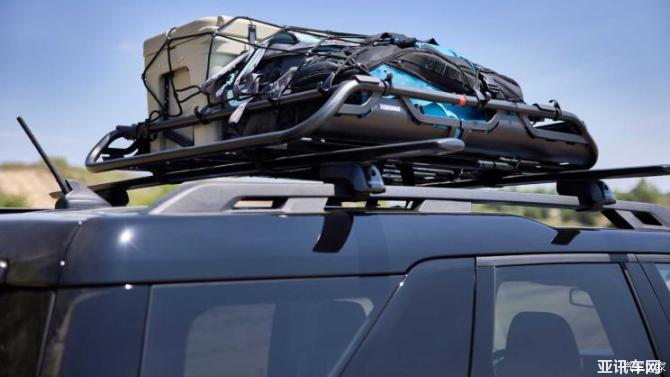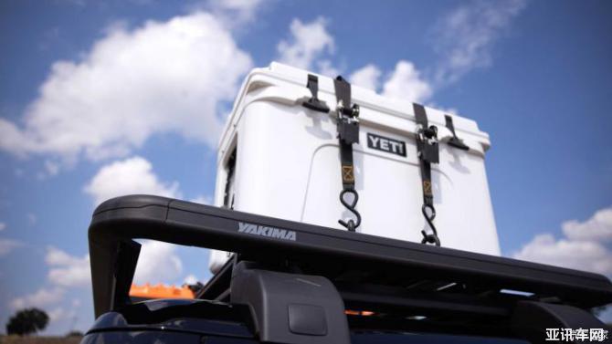 從官圖可以看出,新車拓展套裝里也有Yakima的裝備,包括越野千斤頂(俗稱猴爬桿)和斧頭支架、救援設(shè)備支架、越野齒輪支架和車頂行李架等。同時拓展包還提供了油罐和回收板,還在升降套件(在原車基礎(chǔ)上離地高度增加一英寸,即2.54厘米)、車前攔和LED越野燈方面進(jìn)行了升級。