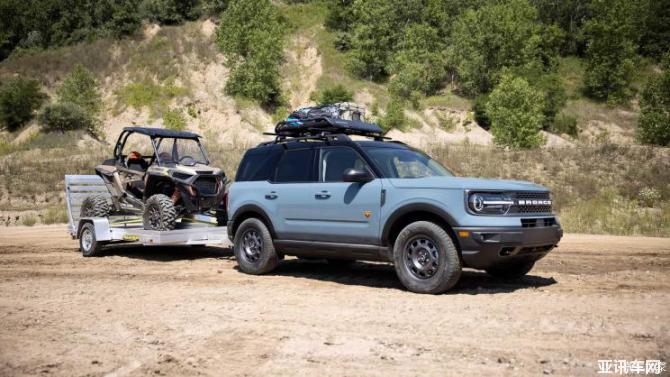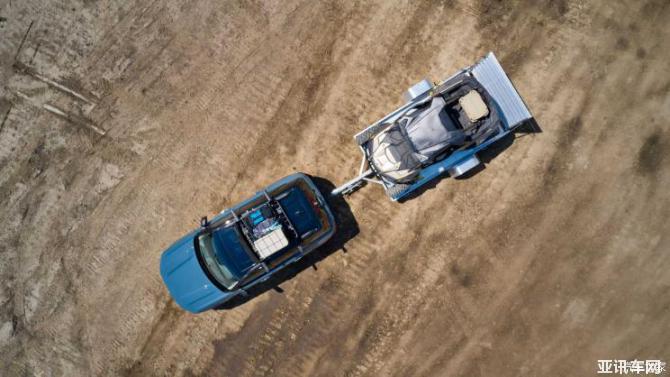 第四款為Bronco Sport Tow RZR概念車,它與第三款概念車一樣也是荒地型選手,該車是福特旗下的II類掛車拖車,可通過掛車拖車包來牽引Polaris RZR XP Turbo1000。這款新車也裝備了Yakima行李架和籃子,以滿足野外額外的存儲功能。
