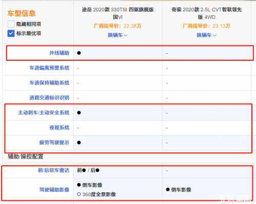 值得一提的是,大眾途岳還配備了Beats音響系統(tǒng)、LED大燈、自動(dòng)頭燈、轉(zhuǎn)向輔助燈、車內(nèi)氛圍燈等更先進(jìn)的配置,用車體驗(yàn)相對(duì)更加智能高級(jí)。而奇駿僅配備了鹵素大燈,照明效果自然不如途岳,不得不說奇駿在配置方面確實(shí)有所缺失。