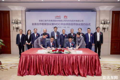2019年12月,江淮汽車(chē)與華為簽約儀式現(xiàn)場(chǎng)