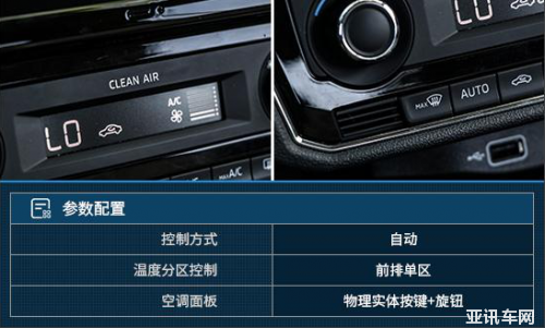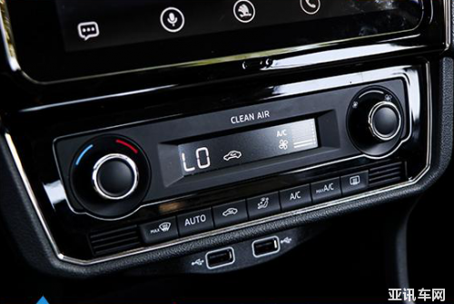 空調(diào)系統(tǒng)比較常規(guī),采用了物理實體按鍵+旋鈕的操作方式,簡單直觀,便于操作。同時,空調(diào)系統(tǒng)還配備了空氣凈化功能以及前擋風(fēng)快速除霧功能,很實用。
